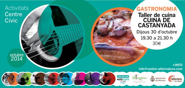 19:30 - Celebra la castanyada cuinant pels que estimes amb receptes boníssimes i típiques de tardor, amb ingredients com les castanyes, els moniatos, els fruits secs... i amb la recepta estrella per fer uns postres com cal: panellets variats! Cal portar davantal. A càrrec de Mireia Penadés